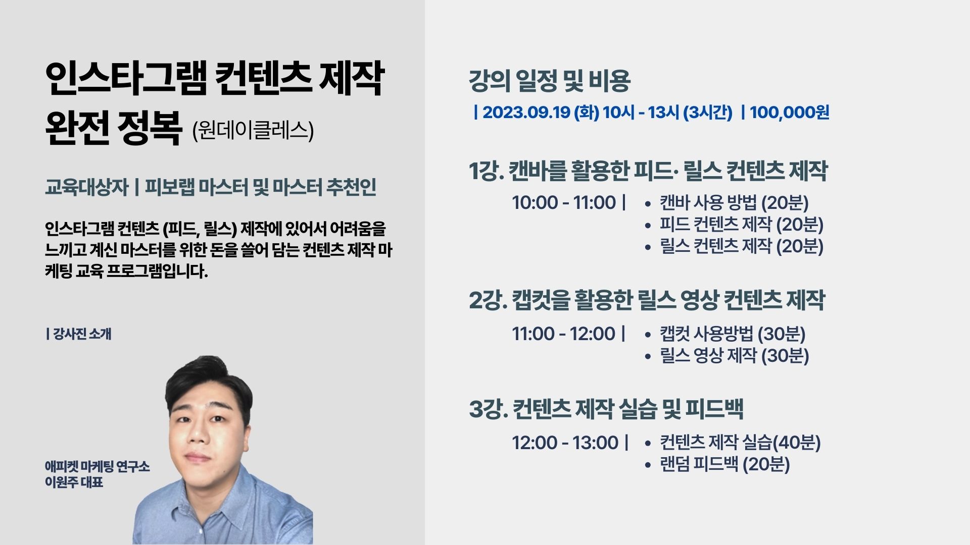 피드, 릴스 제작에 있어 어려움을 느끼고 계신 마스터를 위한 돈을 쓸어 담는 컨텐츠 제작을 위한 마케팅 교육 프로그램 입니다.